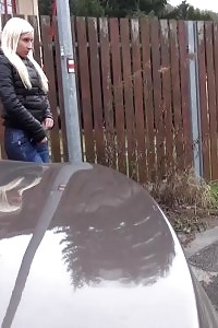 Magnetic blonde pissing on a train platform